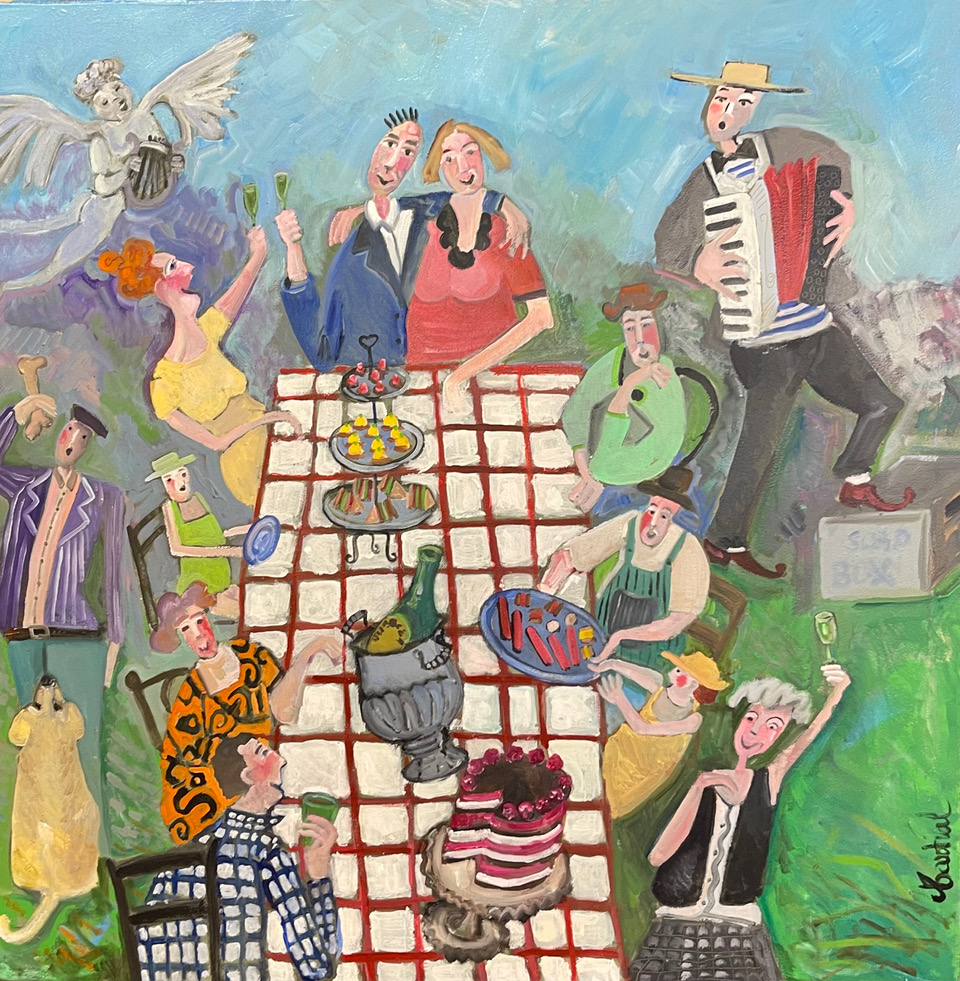 Susan Landau with her ceramics – arresting shapes, colours and specialised glazing techniques, Martial Cosyn with his joyful paintings of plenty – be it food, friends or celebrations and Sumit Ameria making paintings of his love of botany, bird life and insects.